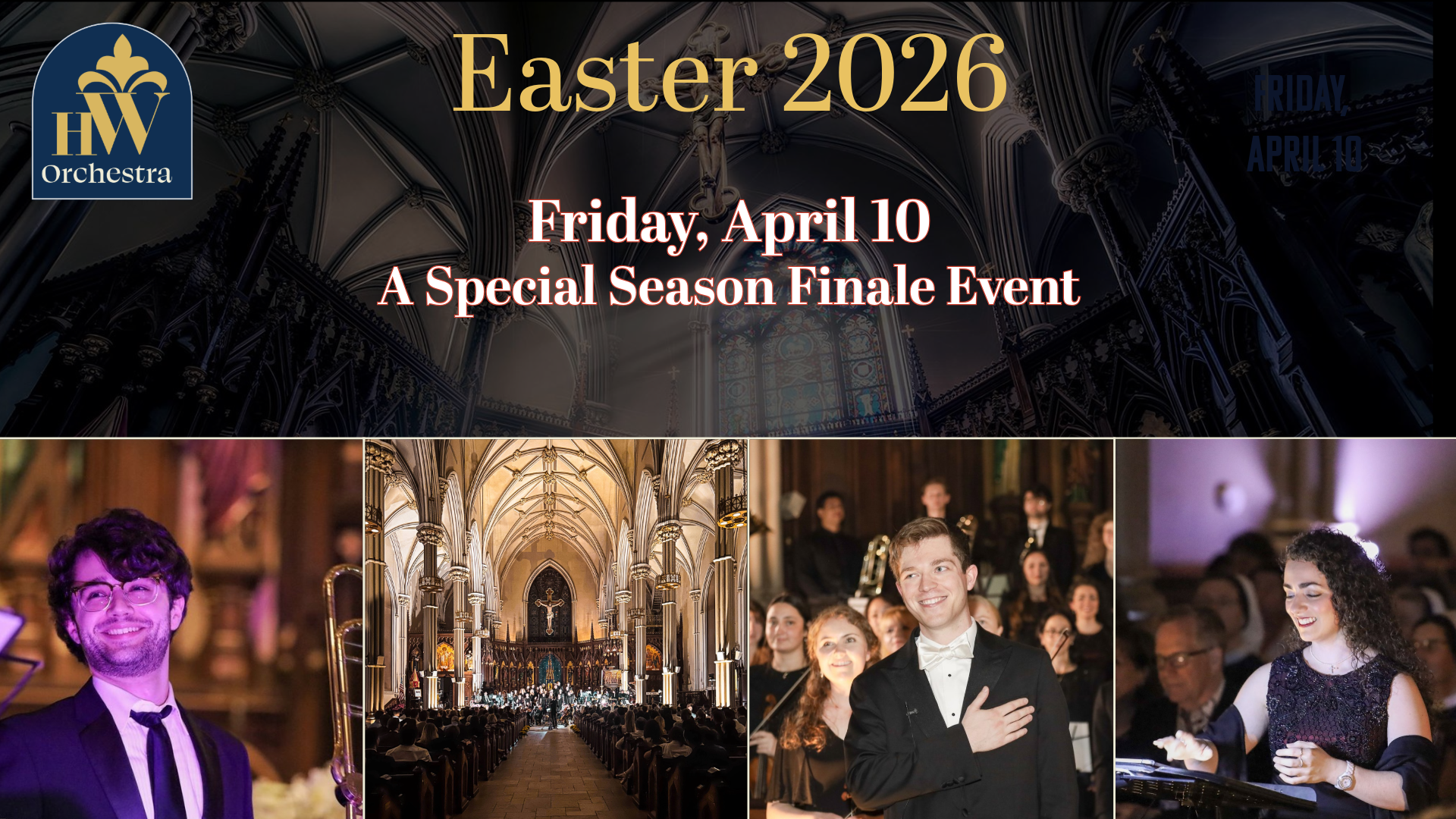 Back to All Events Ever Ancient, Ever New: An Easter Symphony Performance Friday, April 10, 2026 7:15 PM 9:00 PM Basilica of St. Patrick's Old Cathedral 263 Mulberry Street New York, NY, 10012 United States (map) Google Calendar ICS Save the Date On Friday, April 10th, the Higher Word Orchestra will be concluding our season with an Easter performance featuring a special them and guest appearance. More details will be announced in the coming weeks.