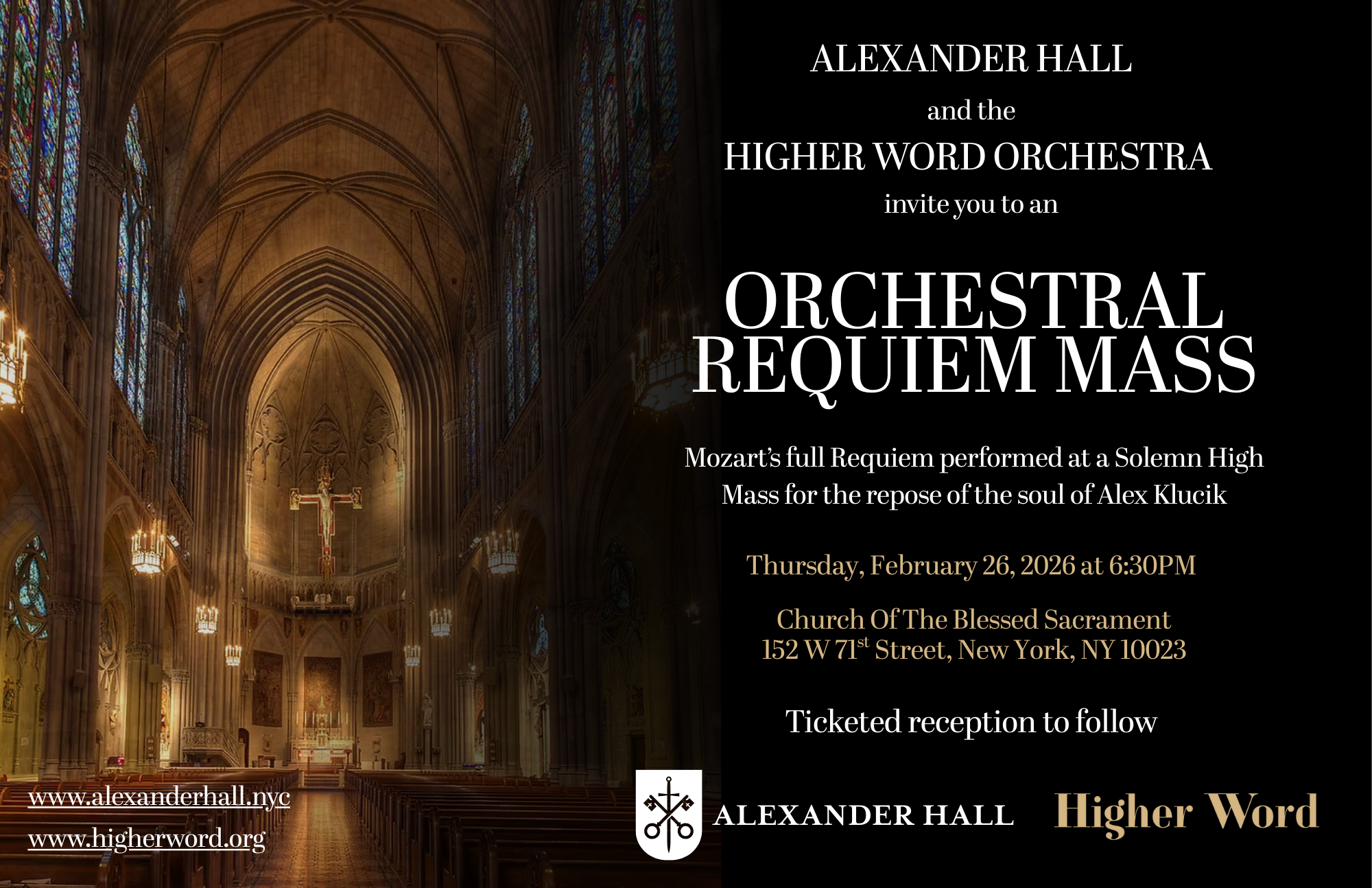 Alex Klucik, who died at age 19, was a uniquely virtuous young man devoted to the Eucharist and the Rosary, and his family is launching a Catholic fraternal residence in NYC in his honor. This Requiem Mass will be an opportunity to pray for Alex's soul but also raise awareness about his life and the legacy being built through this housing project.